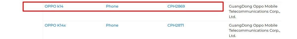 เอกสารการรับรองระบุว่า OPPO K14 ใช้หมายเลขรุ่น CPH2869 ซึ่งแตกต่างจาก OPPO K14x ที่ใช้หมายเลขรุ่น CPH2871 และเคยผ่านการรับรองจากหน่วยงานเดียวกันมาก่อนหน้านี้ นอกจากนี้ OPPO ยังมีรายงานว่ากำลังพัฒนา OPPO K14 Turbo และ K14 Turbo Pro สำหรับตลาดประเทศจีนอีกด้วย