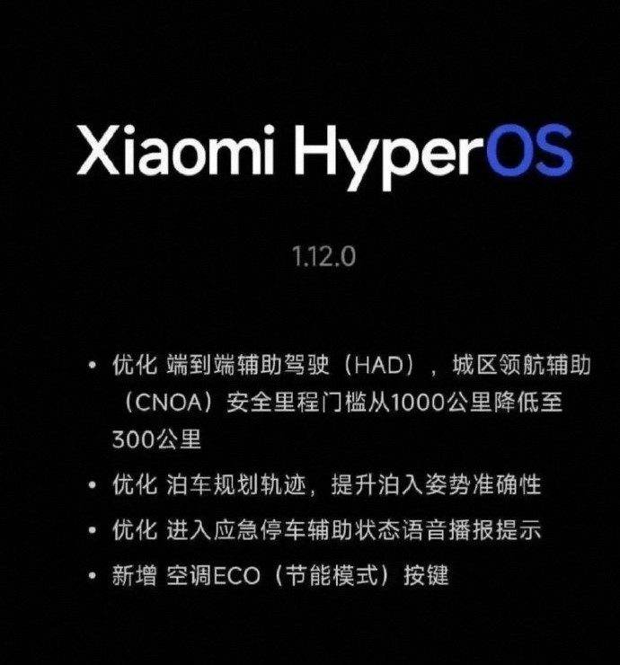 เมื่อวันที่ 5 กุมภาพันธ์ที่ผ่านมา Li Xiaoshuang รองประธานฝ่าย Xiaomi Auto ได้ออกมาเปิดเผยผ่านคลิปวิดีโออย่างเป็นทางการว่า Xiaomi ได้เริ่มปล่อยอัปเดตซอฟต์แวร์ OTA เวอร์ชันล่าสุด HyperOS 1.12.0 สำหรับรถยนต์ของบริษัทแล้ว โดยหนึ่งในประเด็นสำคัญของอัปเดตครั้งนี้คือการ ปรับลดระยะทางขับขี่สะสมขั้นต่ำที่จำเป็นก่อนเปิดใช้งานระบบช่วยขับขี่