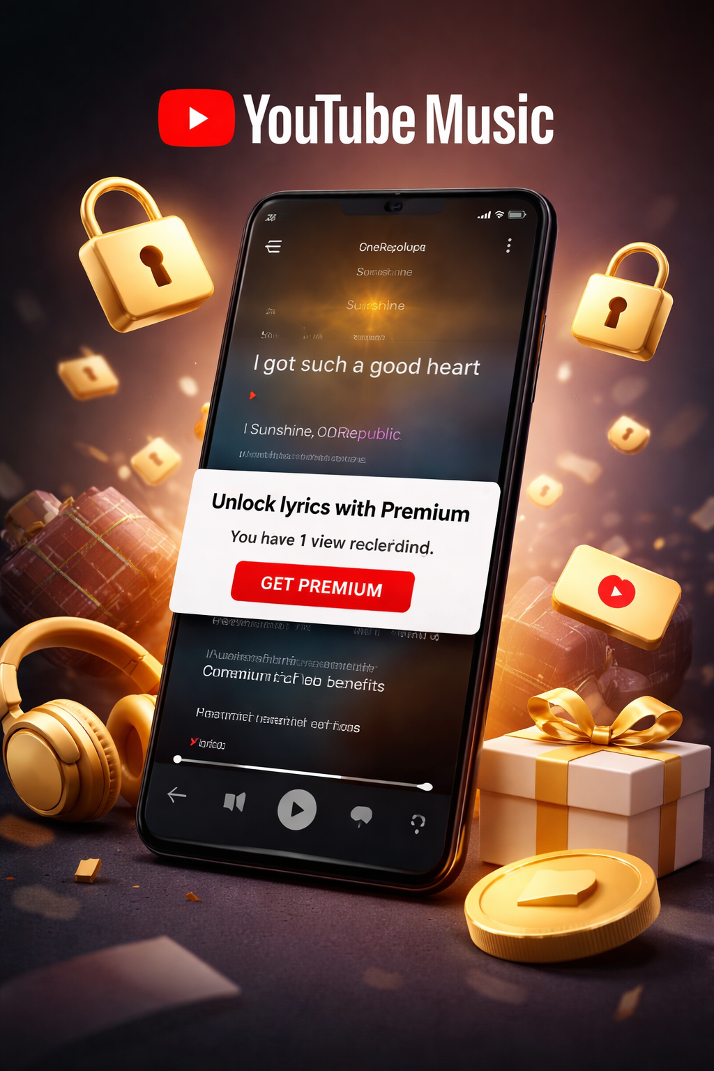 ผู้ใช้งานหลายรายในชุมชน r/YoutubeMusic บน Reddit พบการเปลี่ยนแปลงของอินเทอร์เฟซ โดยเมื่อกดเข้าแท็บ Lyrics จะมีข้อความแจ้งเตือนปรากฏขึ้นว่า “คุณเหลือสิทธิ์ดูเนื้อเพลงอีก X ครั้ง ปลดล็อกการใช้งานด้วย Premium” ซึ่งจำนวนครั้งจะเริ่มต้นที่ 5 และลดลงทุกครั้งที่ผู้ใช้เปิดดูเนื้อเพลง จนกระทั่งไม่สามารถเข้าถึงได้อีกหากไม่สมัครสมาชิกแบบเสียเงิน