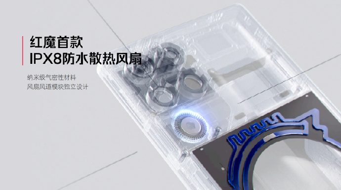 ในส่วนของระบบระบายความร้อนด้วยลม RedMagic ยังได้พัฒนาใหม่เป็นรุ่น “Drive Wind 4.0” ซึ่งใช้พัดลมหมุนเร็วสูงถึง 24,000 รอบต่อนาที พร้อมมาตรฐานกันน้ำระดับ IPX8 และเพิ่มประสิทธิภาพของการระบายความร้อนด้วยลมขึ้นอีกกว่า 120% เมื่อเทียบกับรุ่นก่อนหน้า สามารถลดอุณหภูมิโดยรวมของเครื่องได้ถึง 6 องศาเซลเซียส เมื่อรวมเข้ากับระบบน้ำเย็นจึงเกิดเป็นระบบ “ICE Dual Cooling System” ที่รวมทั้งลมและน้ำในการระบายความร้อน ซึ่งถือเป็นจุดเปลี่ยนสำคัญของวงการสมาร์ตโฟนเกมมิ่งทั่วโลก เพราะช่วยให้เครื่องสามารถรักษาประสิทธิภาพสูงสุดได้ต่อเนื่องยาวนานโดยไม่ลดเฟรมเรตหรือเร่งความร้อน