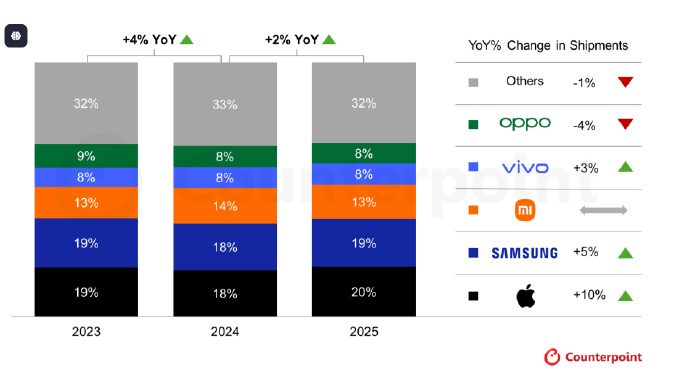 จากภาพรวมดังกล่าว ทำให้ปี 2025 ถูกมองว่าเป็นปีแห่งการ “รีเซ็ตสมดุล” ของอุตสาหกรรมสมาร์ตโฟนโลก โดย Apple และ Samsung ยังคงเป็นสองขั้วหลักของตลาด ขณะที่แบรนด์จีนต้องเร่งปรับกลยุทธ์เพื่อรักษาการเติบโตในสภาพตลาดที่แข่งขันรุนแรงมากขึ้น