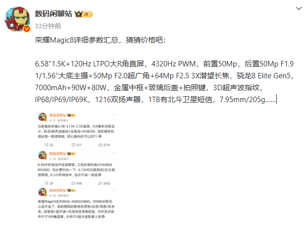 จากข้อมูลทั้งหมดนี้ บ่งบอกว่า Honor Magic 8 จะเป็นเรือธงตัวใหม่ที่พร้อมแข่งขันกับรุ่นใหญ่อย่าง Huawei Mate 70, Xiaomi 15 และ OnePlus 15 ในช่วงปลายปีนี้อย่างแน่นอน ด้วยดีไซน์หรูหรา กล้องประสิทธิภาพสูง แบตเตอรี่ขนาดใหญ่ และขุมพลังชิป Snapdragon รุ่นล่าสุด ถือเป็นอีกหนึ่งสมาร์ตโฟนที่น่าจับตามองที่สุดของปี 2025