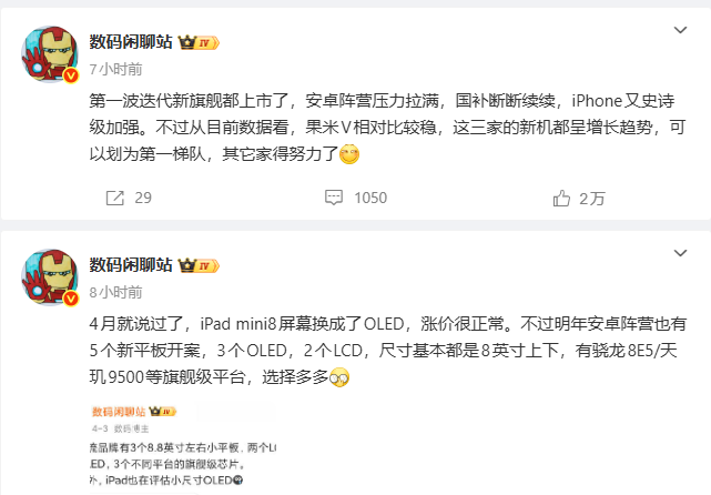 โพสต์จากบัญชี “数码闲聊站” (Digital Chat Station) เผยว่า การเปิดตัวของสมาร์ตโฟนเรือธงยุคใหม่ช่วยกระตุ้นตลาดมือถือให้กลับมาคึกคัก หลังจากที่ยอดขายในช่วงกลางปีอยู่ในระดับทรงตัว โดยเฉพาะสามแบรนด์ใหญ่ในจีน — Xiaomi, OPPO และ vivo — ที่ต่างก็มีแนวโน้มยอดขายเติบโตขึ้นจากความนิยมของรุ่นใหม่ในแต่ละซีรีส์