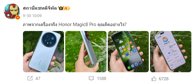 มีภาพหลุดของ Honor Magic8 Pro ออกมาแบบชัด ๆ บน Weibo เผยให้เห็นทั้งฝาหลัง โมดูลกล้องขนาดใหญ่ และหน้าจอขณะใช้งานจริง โดยภาพชุดนี้ช่วยยืนยันทิศทางการออกแบบและสเปกหลักหลายจุดของเรือธงรุ่นถัดไปจาก Honor ซึ่งคาดว่าจะเปิดตัวอย่างเป็นทางการในช่วงปลายปีหรือต้นปีหน้า