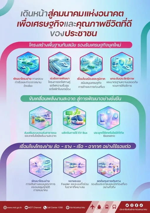 การยกระดับคมนาคมครั้งนี้จึงไม่ใช่เพียงการลงทุนด้านโครงสร้างพื้นฐาน แต่เป็นการวางรากฐานสู่อนาคตที่เชื่อมโยงเศรษฐกิจ สังคม และสิ่งแวดล้อมเข้าด้วยกันอย่างสมดุล มุ่งสร้างระบบขนส่งที่ปลอดภัย ทันสมัย และทั่วถึง เพื่อยกระดับคุณภาพชีวิตคนไทยและเสริมความแข็งแกร่งให้ประเทศในเวทีโลกอย่างยั่งยืน